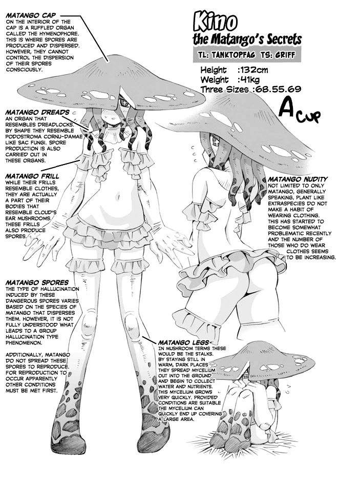 The Matango is one of numerous pseudo-humanoid species that were publicly revealed three years ago with the adoption of the Extraspecies Exchange Program sponsored by the UN. Essentially a fungal subspecies of the Dryad, many are wary towards the Matango due to the rumor of a parasitic life cycle. While unconfirmed, Matango do produce spores that may pose a risk to asthma or allergy sufferers, with some able to produce spores with hallucinogenic properties. It is also known that the dryad is one of the few pseudo-humanoid species that comprise of a single gender, in this case female.